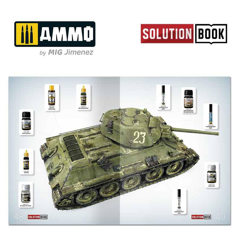 Solution Box Mini 4BO Russian Green Vehicles offers you everything you need to paint and weather your models of WWII Soviet Army vehicles. You will not only find the accurate colour paints, weathering products, and brushes, we have also included the valuable resource Solution Book - How to Paint 4BO Russian Vehicles as well. This complete 52-page guide with step-by-step tutorials in four languages (English, Spanish, French, and German) explains how to apply the different colours and effects common to Red Army vehicles painted in a monotone scheme of 4BO. SOLUTION BOOK is a simple and basic guide intended to help any modeller easily achieve similar results to those shown in each example. It doesn´t matter if the reader is a novice or a more seasoned and experienced modeller, by following the steps in this guide you will be able to obtain amazing results with the efficient and effective methods shown.