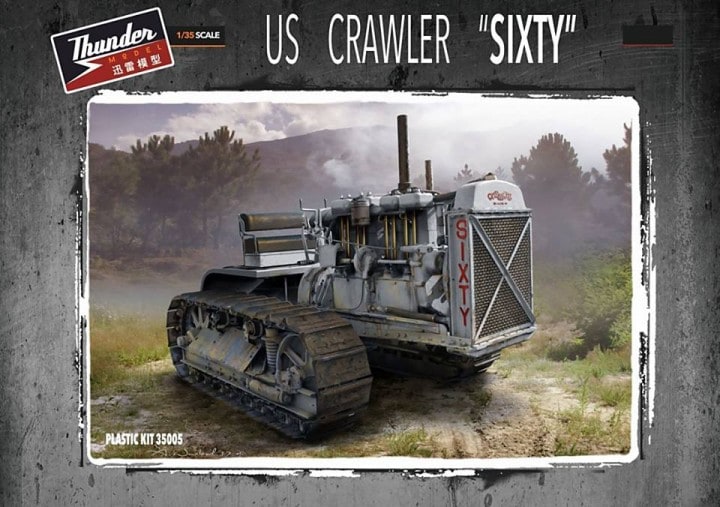 Plastikový model amerického pásového traktora "Sixty" v mierke 1:35 od firmy Thunder Model.