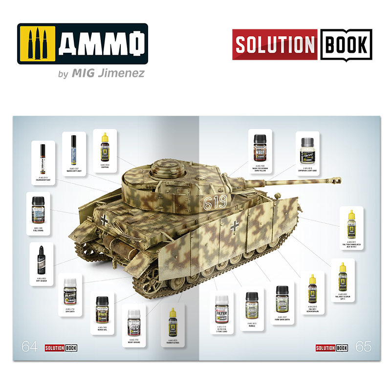 Táto KNIHA RIEŠENÍ je kompletný 67-stranový sprievodca, ktorý Vám krok za krokom vysvetľuje ako namaľovať a ako aplikovať najbežnejšie poveternostné vplyvy na nemecké vozidlá z polovice druhej svetovej vojny od experta bojovej techniky, modelára John Bonanni.